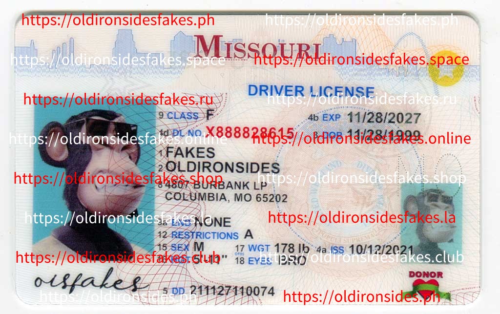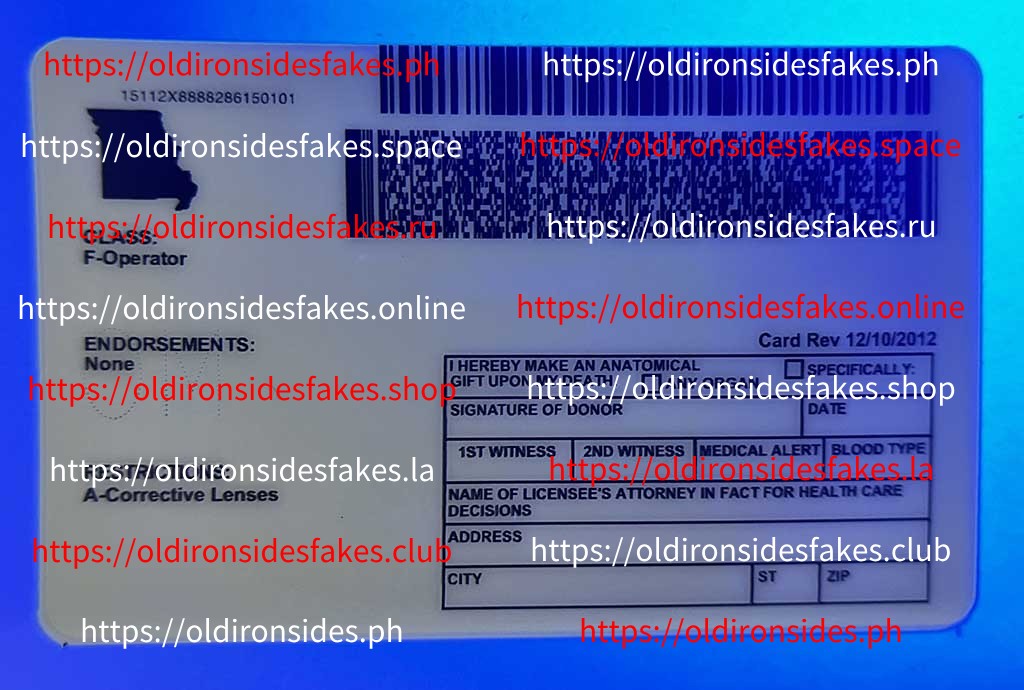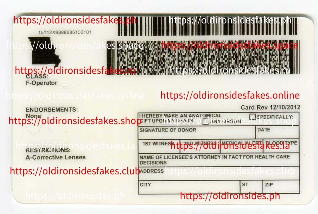 Missouri Driver License (Old MO O21) – OldIronsidesFakes PH issued to people who are 16 years of age or older is a 6″ x 4 1/2″ plastic card with a magnetic stripe. The front of this card is fastened by one-sided adhesive tape and displays the cardholder’s picture, name, address, and birth date in both English and Spanish (unless the applicant cannot read or speak English). In August 2013, the design on MO O21 DLs changed slightly.
